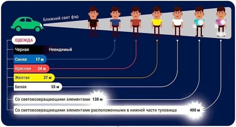 Использование световозвращающих элементов снижает риск наезда на пешехода на 65%.