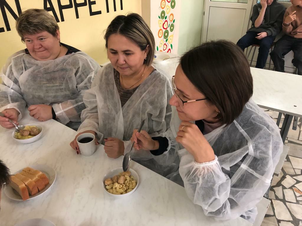 В рамках Дня открытых дверей прошла дегустация школьного завтрака и обеда. На дегустацию были приглашены родители обучающихся. Они сверили соответствие фактического меню с меню, размещенным на информационном стенде, проверили график питания, визуально оценили уровень отходов, посмотрели условия хранения, изучили этикетки и срок годности, попробовали еду сами. Родители поставили свою оценку каждому блюду, отметив, что и завтрак, и обед приготовлены очень вкусно.